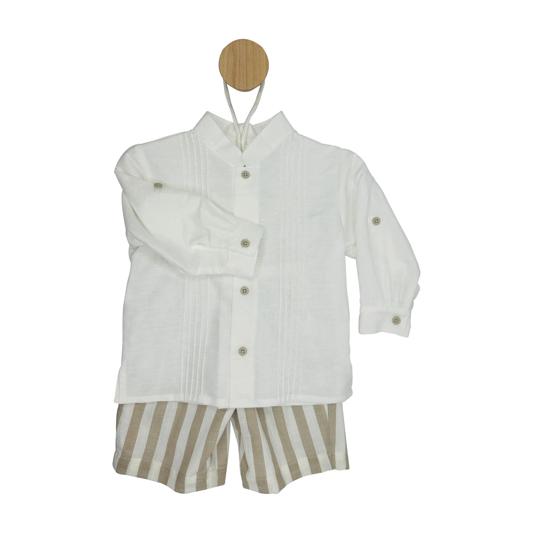 Two pieces linen set Shirt ivory with camel buttons and short pants camel ivory stripes....