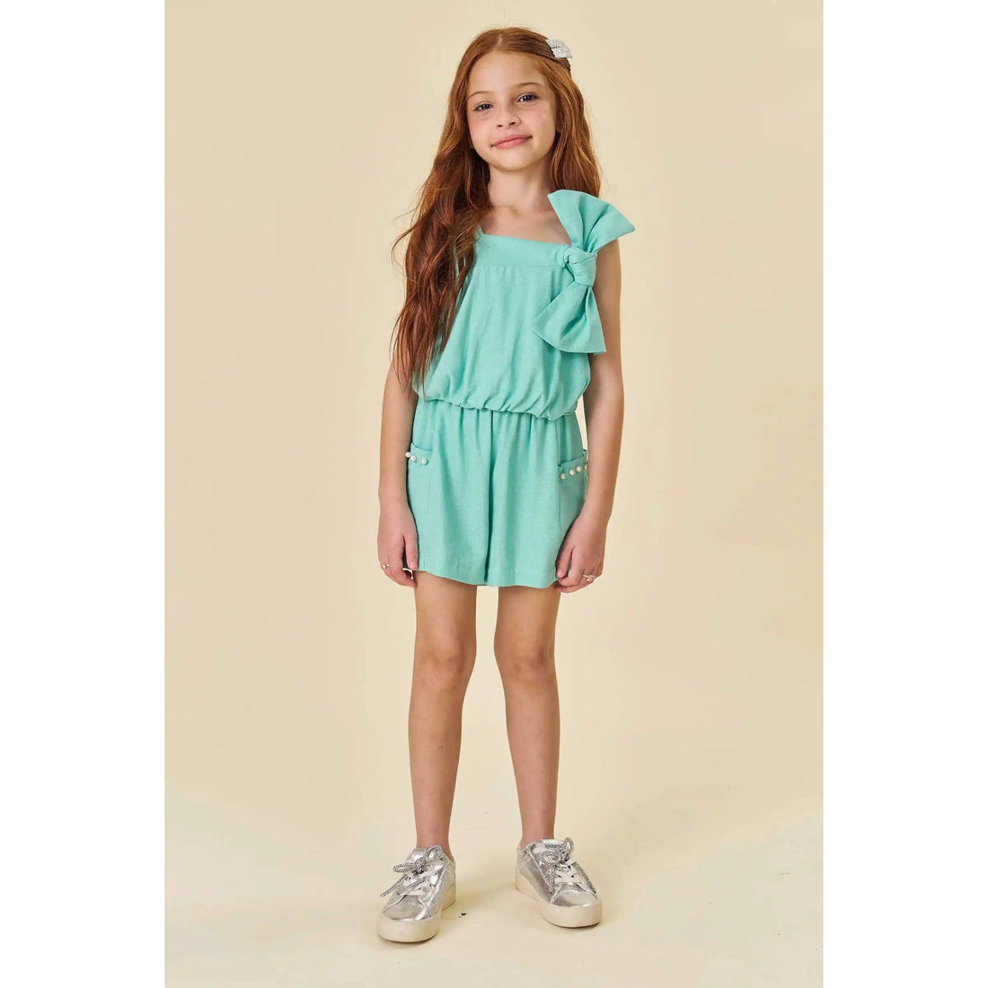 Pin dots and pineapples create a sweet motif for a girls' two-piece rashguard set crafted...