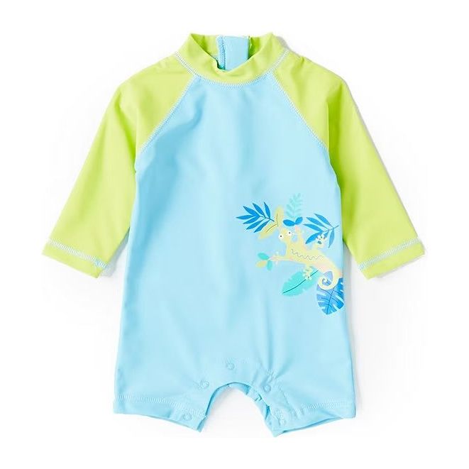 Raglan Sleeve Color Block Gecko Graphic Rashguard Swim Suit