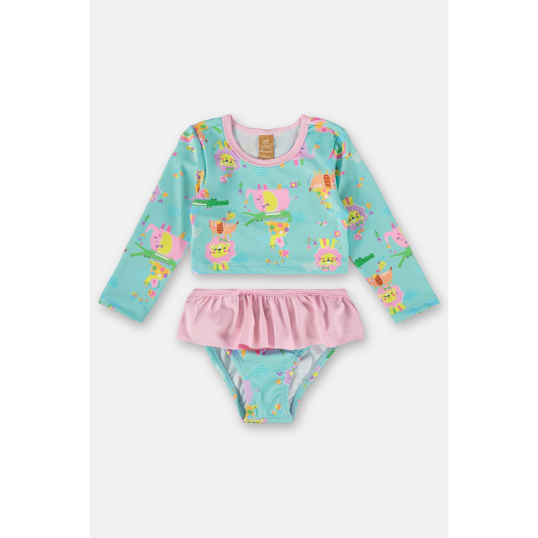 Shade your little beach babe from the sun with our toddler girls' rainbow rashguard set...
