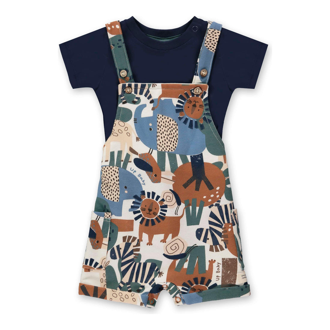 Set includes 1 T-shirt and 1 pair of shorts Top: henley neckline; short sleeves; graphic...