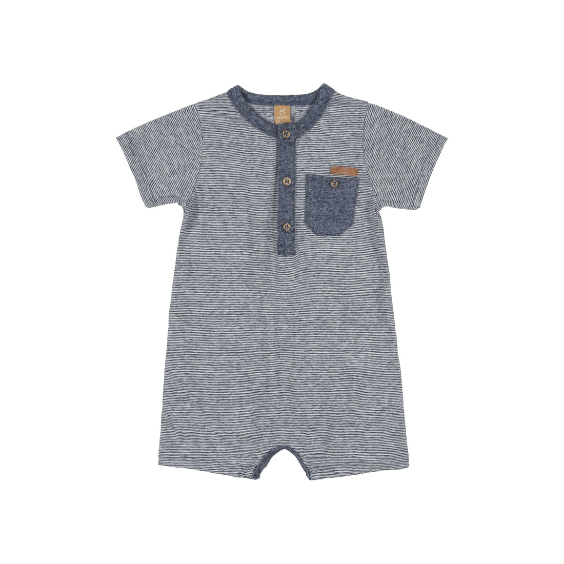 Blue stripes romper with pocket.
