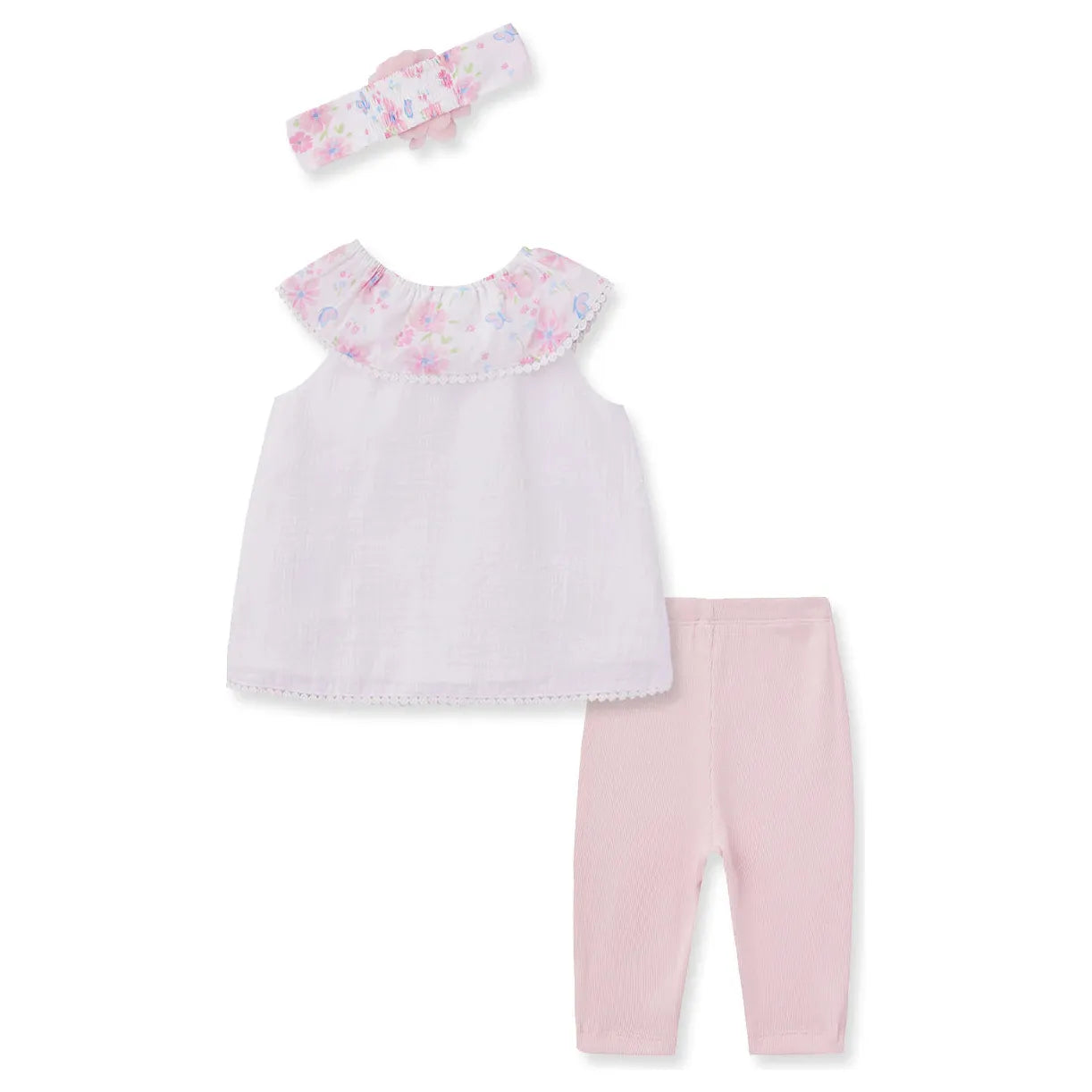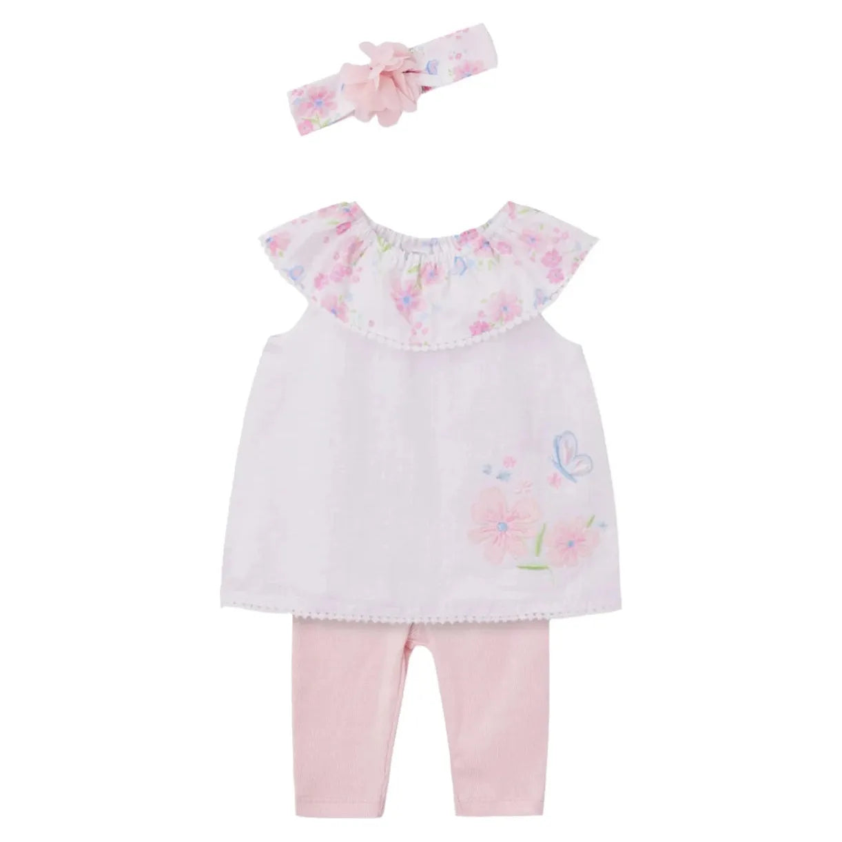 - A newborn baby girls' headband adds a pretty twist to a sweet floral tunic and cotton leggings designed for cute and comfy play.