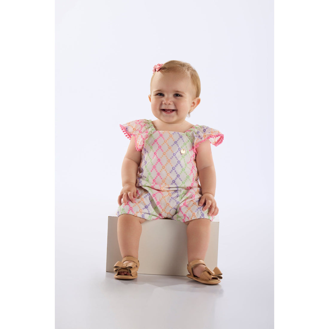 Comfy in all-cotton gauze, this sweet Little Me romper is covered in cute daisies.