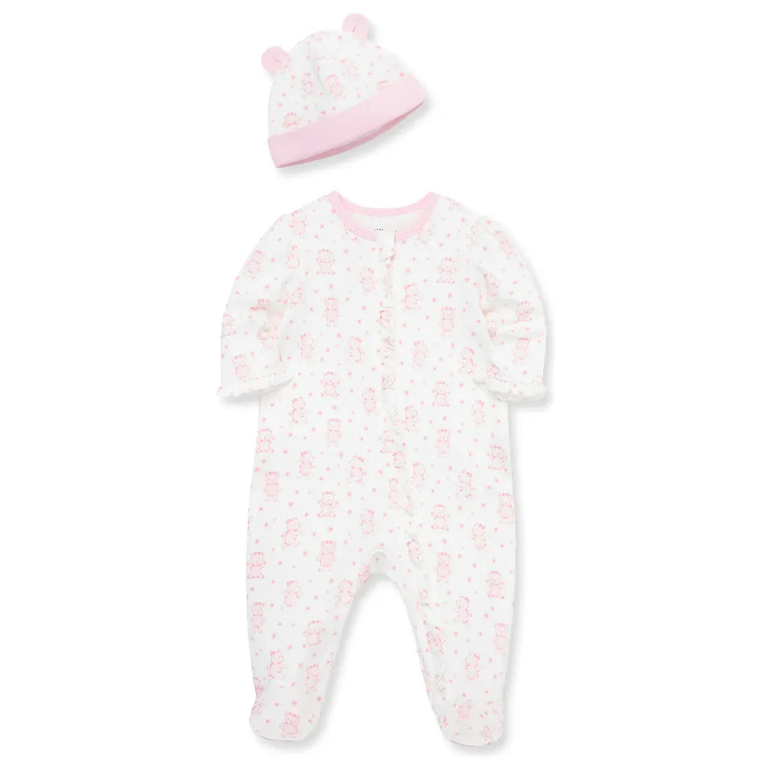 Baby girl will be bear-y cute in this pink bear and star print zippered footie...