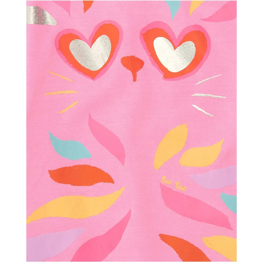 Knit dress for girls in pink with an animal-inspired print and metallic details. Designed for a comfortable fit with an elastic waistband and side closure on the shoulder.