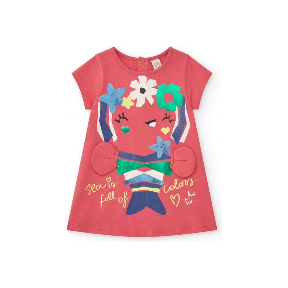 Knit dress for girls in pink, with a crab print accompanied by marine details such...