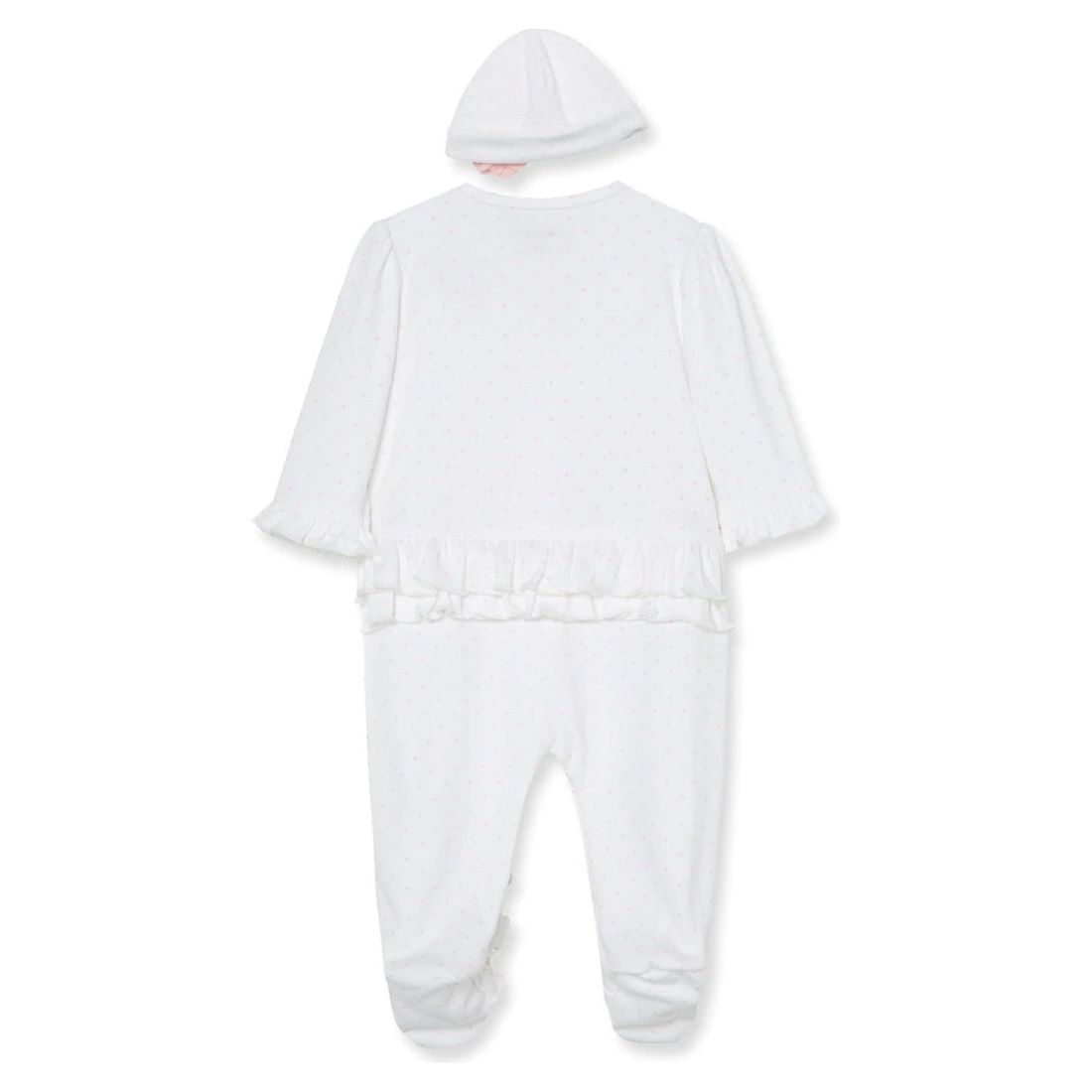 - Little frills add a lovely touch to a newborn baby girls' gentle zip footie and hat crafted in petal-soft cotton.