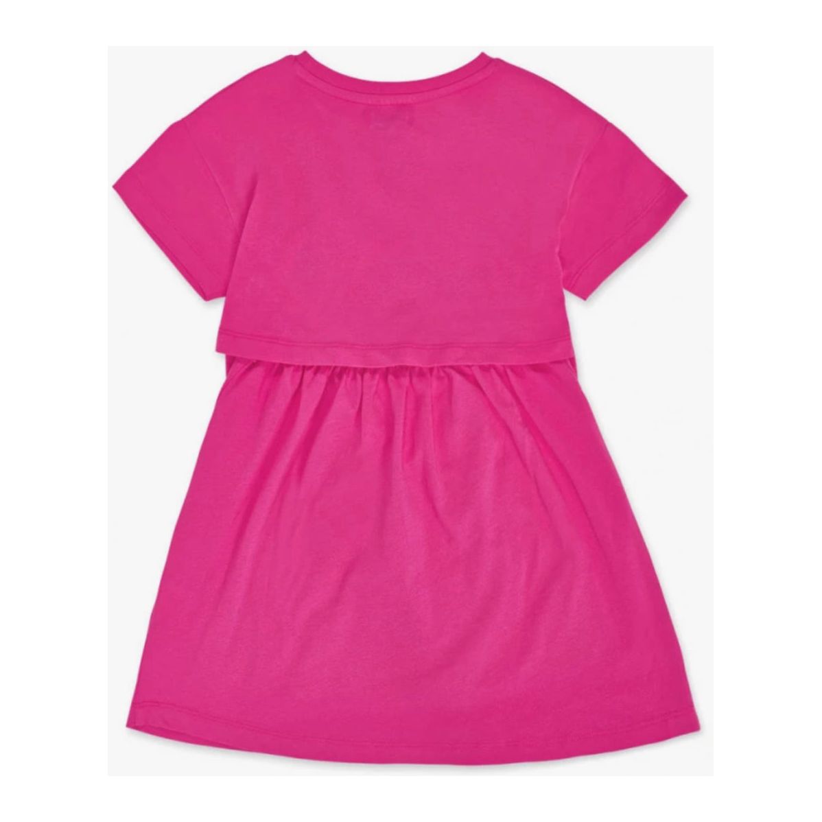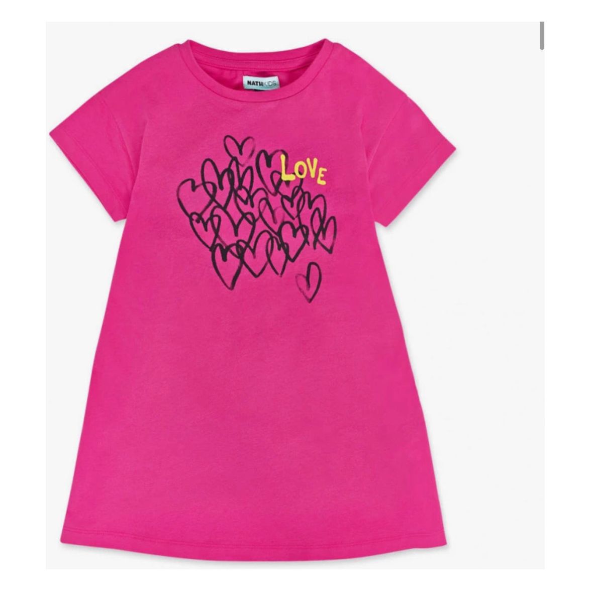 Fuchsia knitted dress with black hearts print and yellow 'Love' sign for girl. NATHKIDS Rebel Girl Collection.